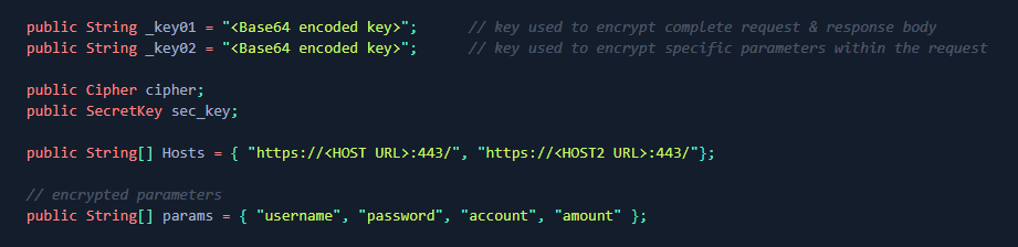 - Add parameters which will be encrypted in `String[][] parameters`