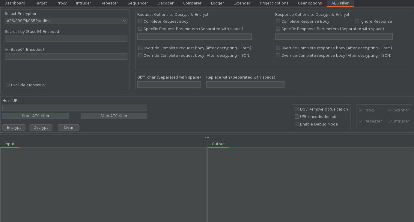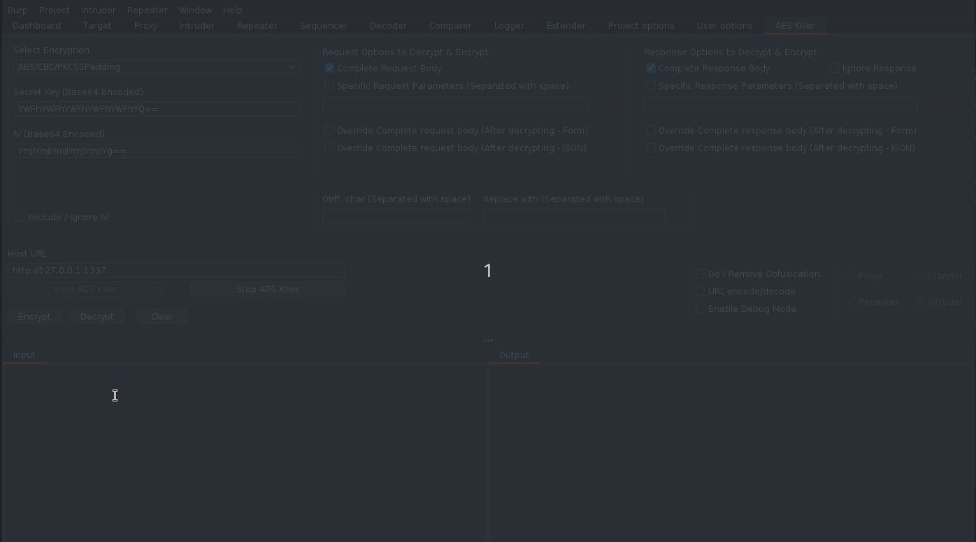 Once we start AES Killer, it takes control of Burp IHttpListener.processHttpMessage which is responsible for handling all outgoing and incoming traffic and AES Killer do the following