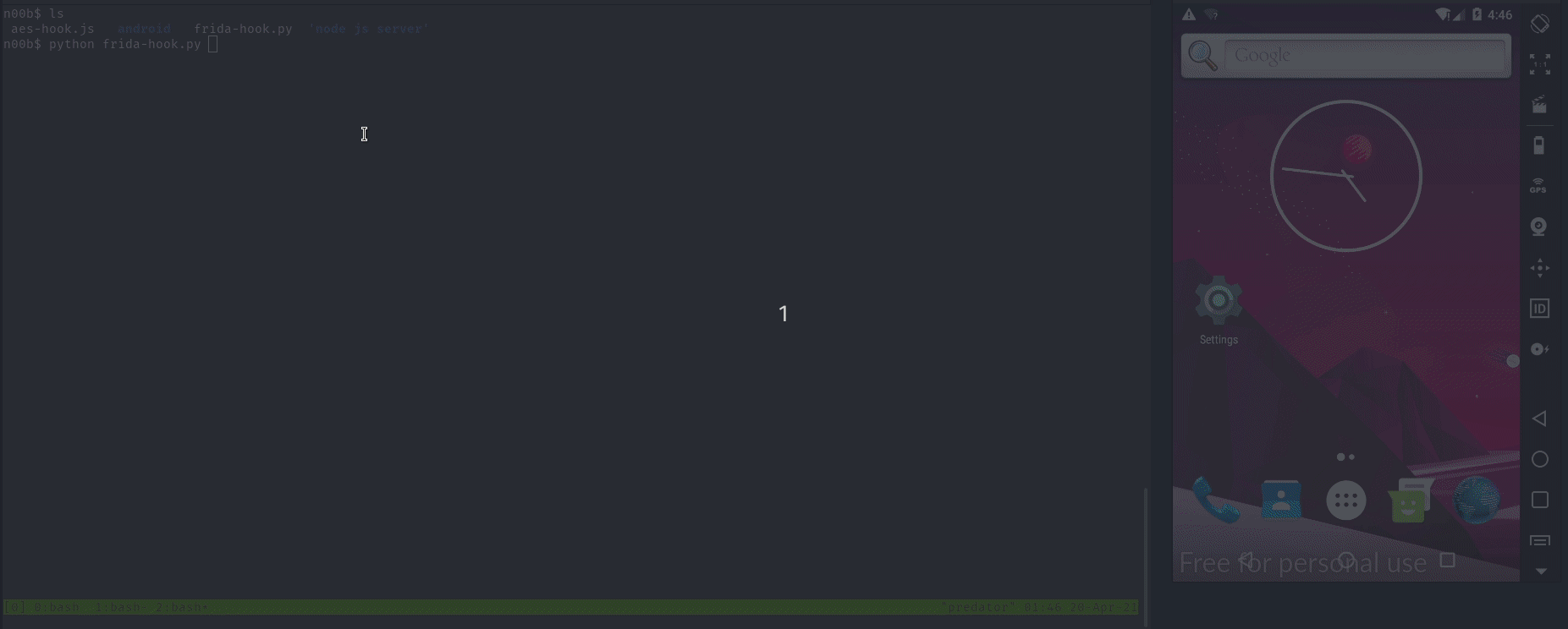 - Run aes-hook.js and frida-hook.py on your host machine to get AES Encryption Key and IV as shown in this post.